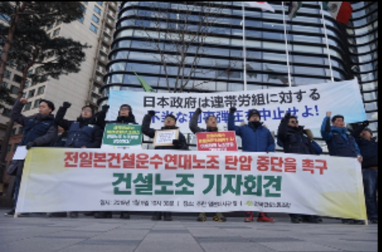 > 韓国の建設労組(5万人)が1月9日、抗議書簡を手渡すために
